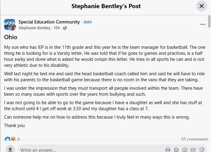 Stephanie felt this was unfair, especially since she believed the school should provide transportation for everyone involved with the team, including managers like her son, who contribute just as much in their own way.